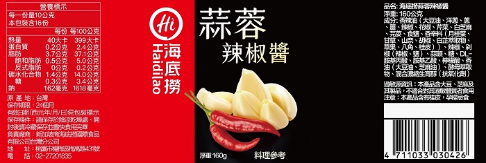 | 商品名稱 | 【海底撈】蒜蓉辣椒醬12罐(160g/罐) |