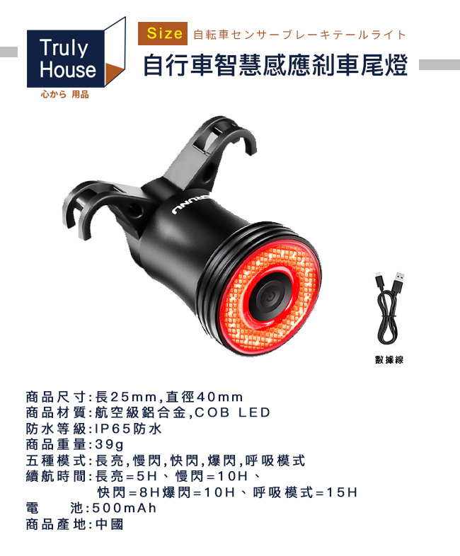 | 【商品名稱或型號】 | 【Truly House】自行車智慧感應煞車尾燈 |