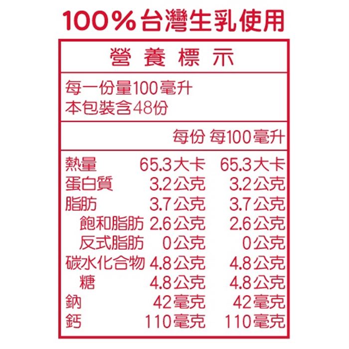 內容物:乳脂肪3.0%以上,非脂肪乳固形物8.25%以上。脂肪無調整