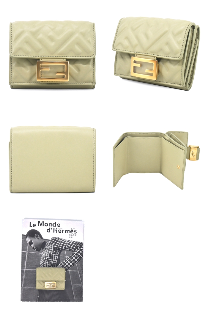 | 【商品名稱】 | 【FENDI】Baguette FF Logo三折短夾-鼠尾草綠 [平輸] |