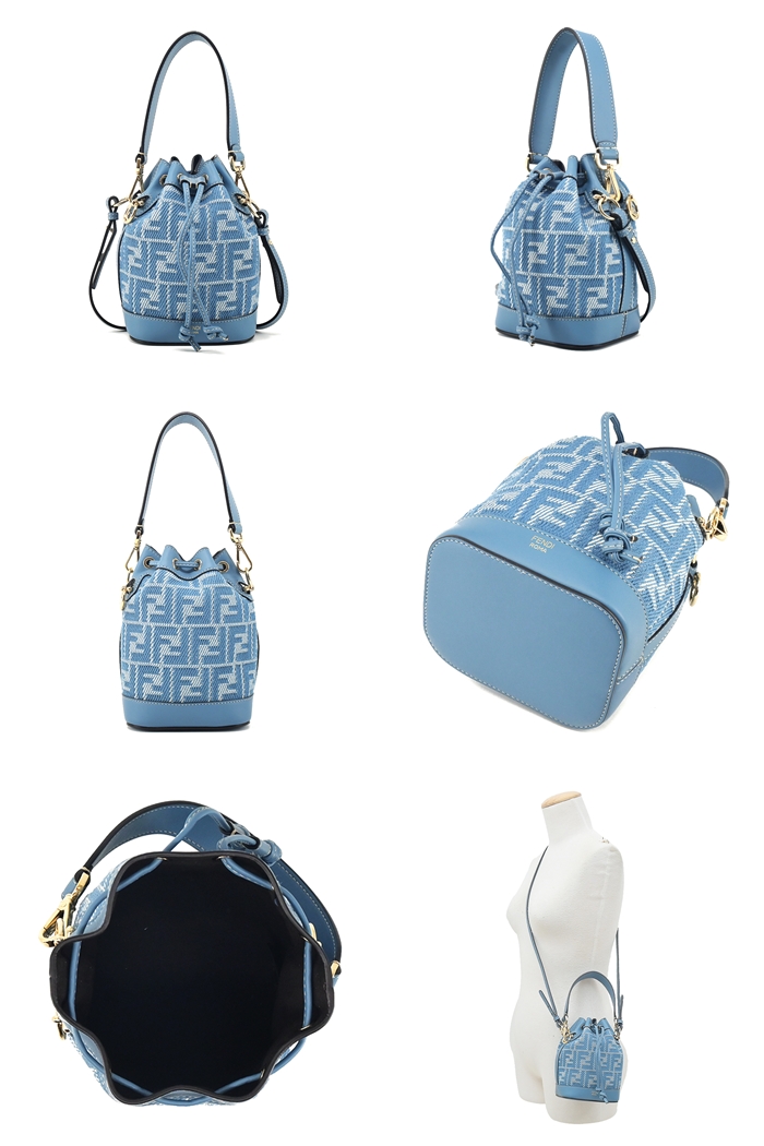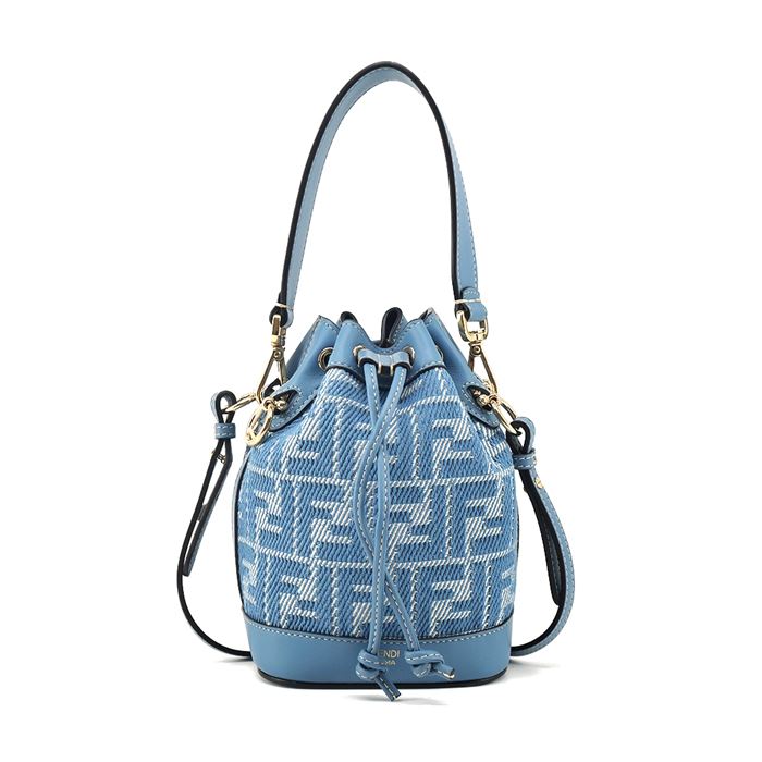 | 【商品名稱】 | 【FENDI】Mon Tresor FF刺繡牛仔布迷你水桶包-藍色 [平輸] |