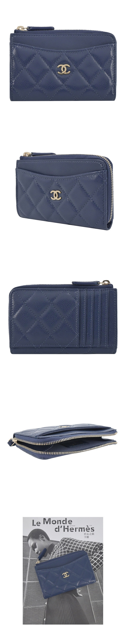 | 【商品名稱】 | 【CHANEL】經典雙C LOGO小牛皮卡片/零錢夾-深藍 [平輸] |