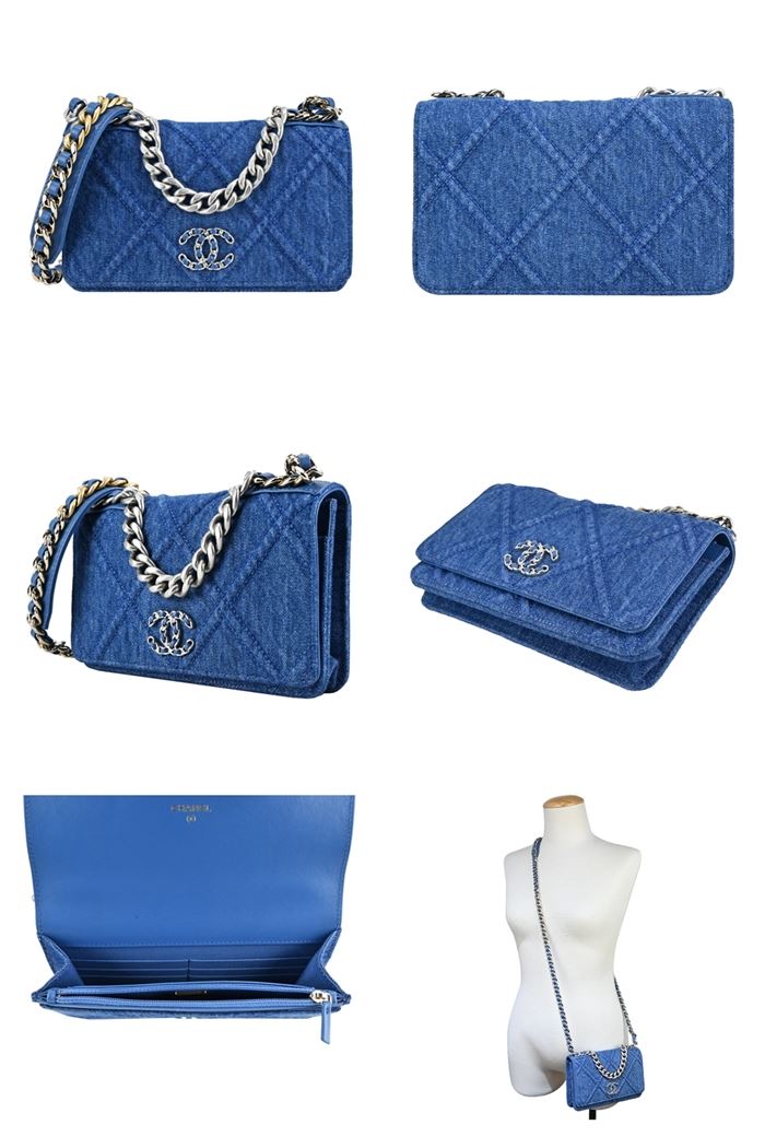 | 【商品名稱】 | 【CHANEL】19經典LOGO菱格紋丹寧帆布鏈帶WOC斜背包-藍色 [平輸] |