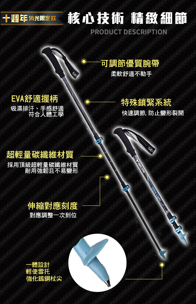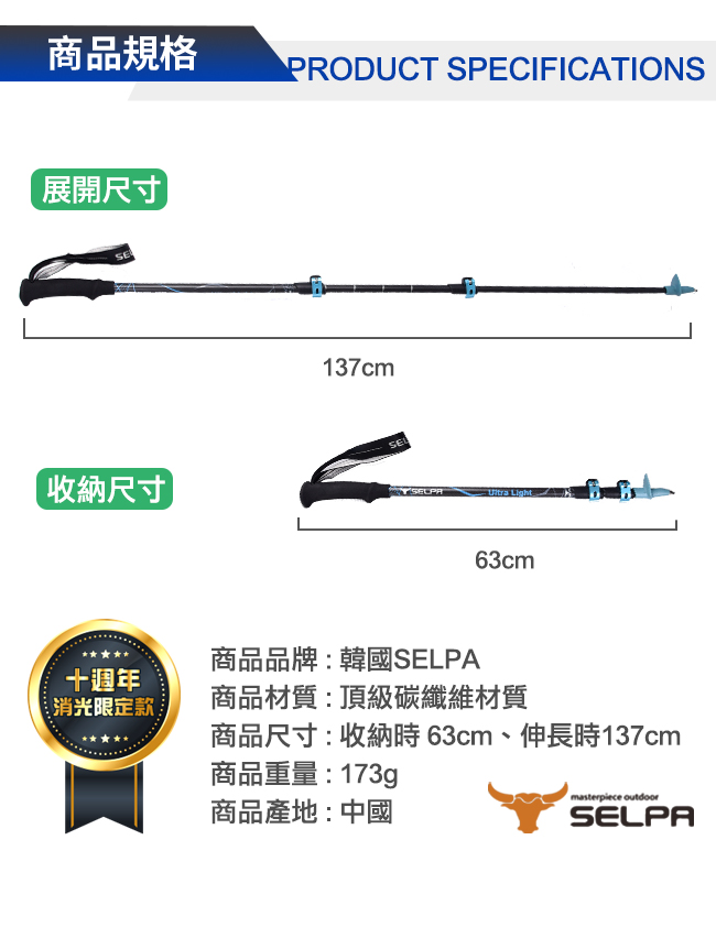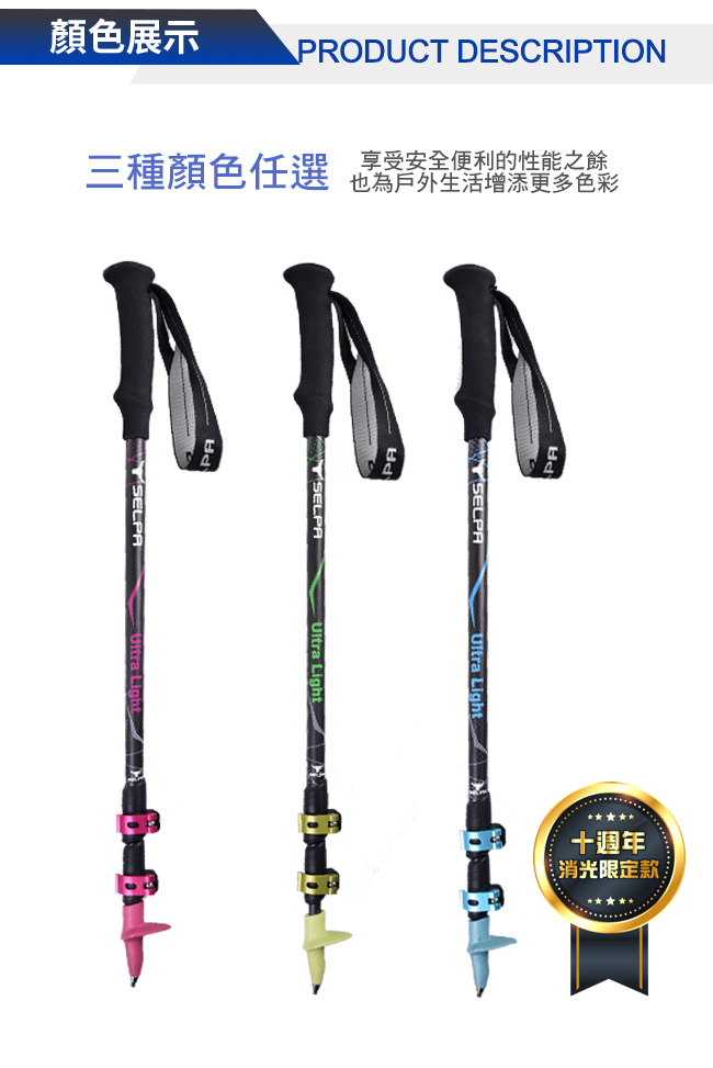 | 【商品名稱或型號】 | 【韓國SELPA】凜淬碳纖維三節式外鎖登山杖 - 3色可選 |