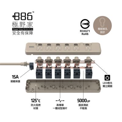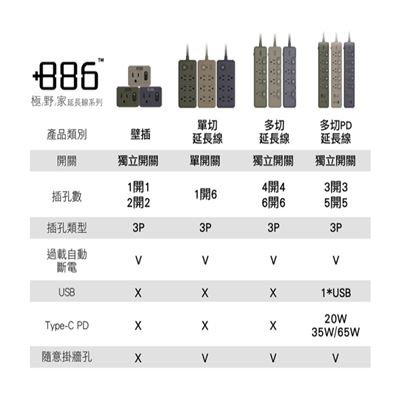 | 商品名稱 | 【+886 極野家】4開4插過載保護延長線1.8米 V2 | |