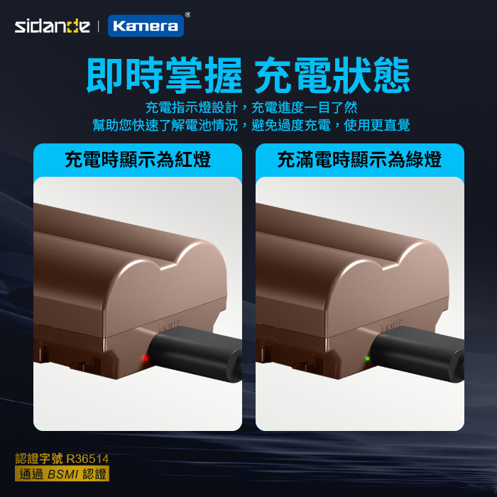 - 充電指示燈設計,避免過度充電,讓您輕鬆掌握充電進度,拍攝旅程中的最佳伴侶