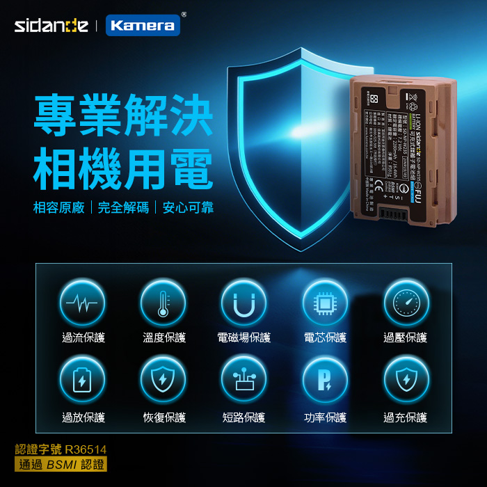 - 專業解決相機用電需求,1:1完美貼合您的相機