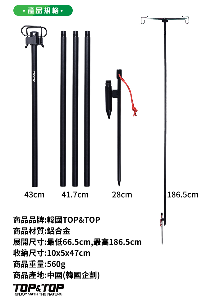 | 【商品名稱或型號】 | 【韓國TOP&TOP】鋁合金雙掛勾燈架 四段高度可調 |