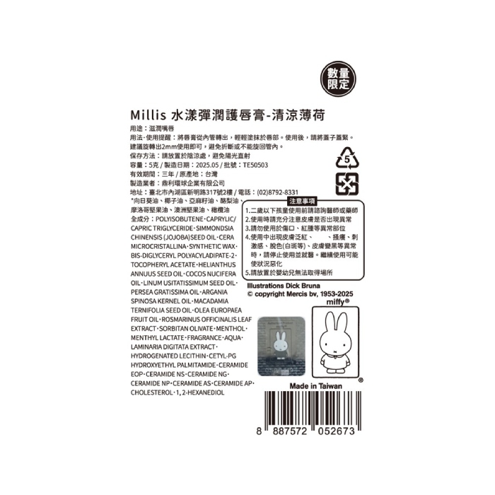Millis水漾彈潤護唇膏-清涼薄荷5g/支 |