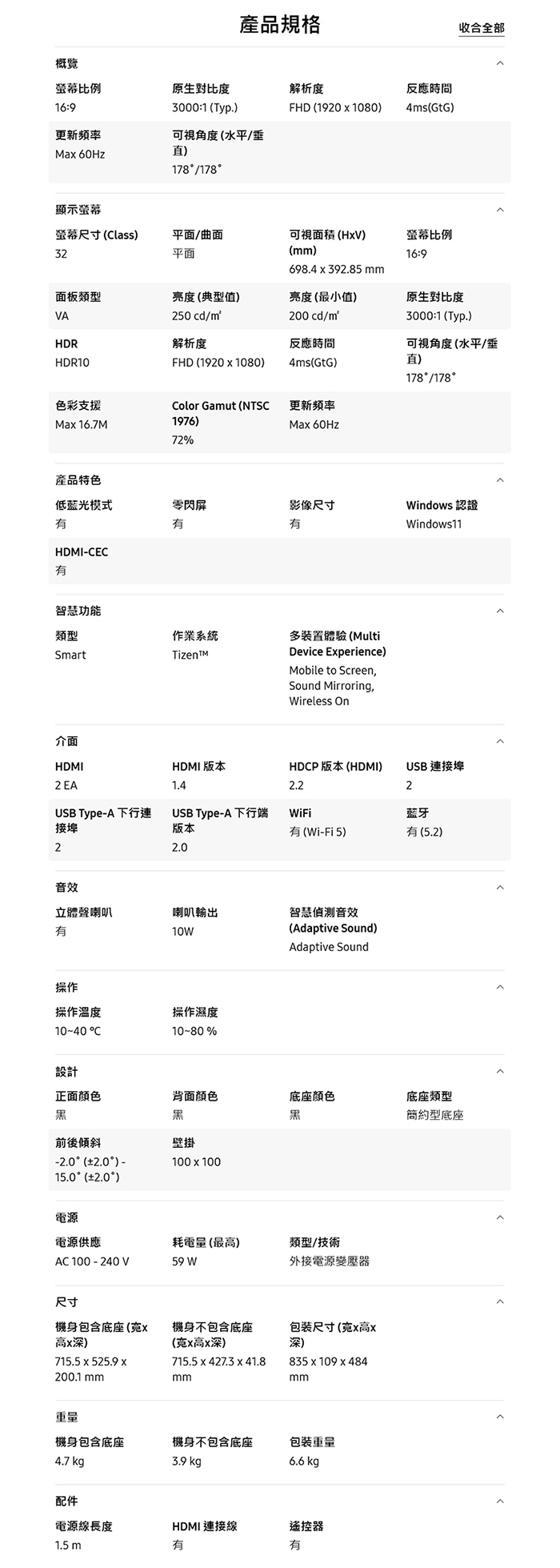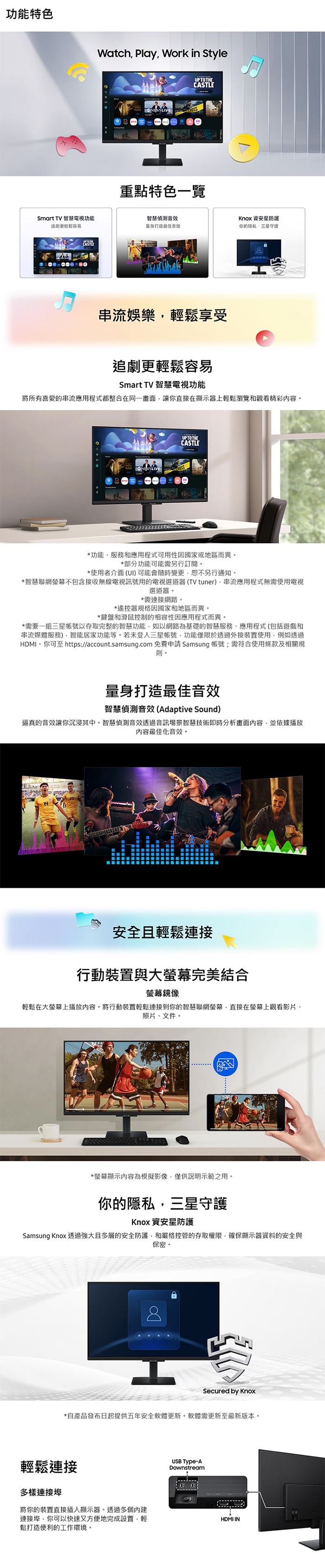 | 商品名稱 | Samsung 32型 M5 FollowMe 移動式智慧聯網螢幕組-黑(S32FM500EC+移動式立架) |