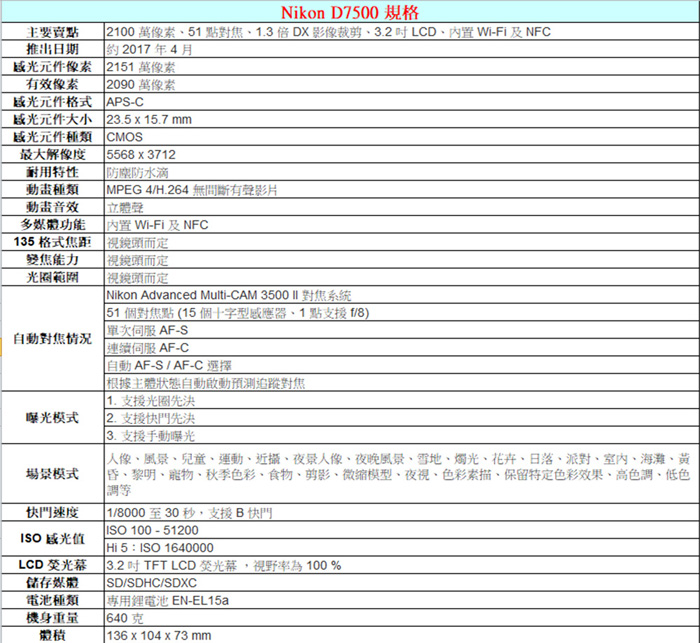 | 【商品名稱或型號】 | 【Nikon】D7500 BODY單機身+18-140mm VR 單鏡組 [平輸] |