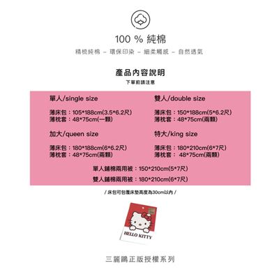 此賣場僅含Hello Kitty雙人床包+枕套組
