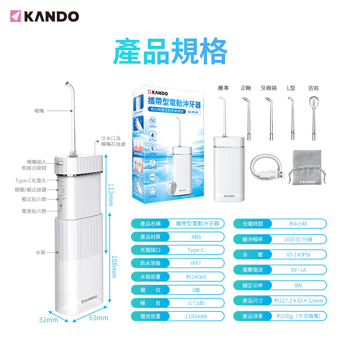 | 商品名稱 | Kando 感動攜帶型電動沖牙機 |