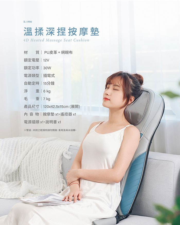 | 【商品名稱或型號】 | 【JHT】4D溫揉深捏按摩墊(K-1906) |