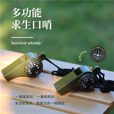 多合一求生哨:包含指南針,溫度計,高音頻哨聲等