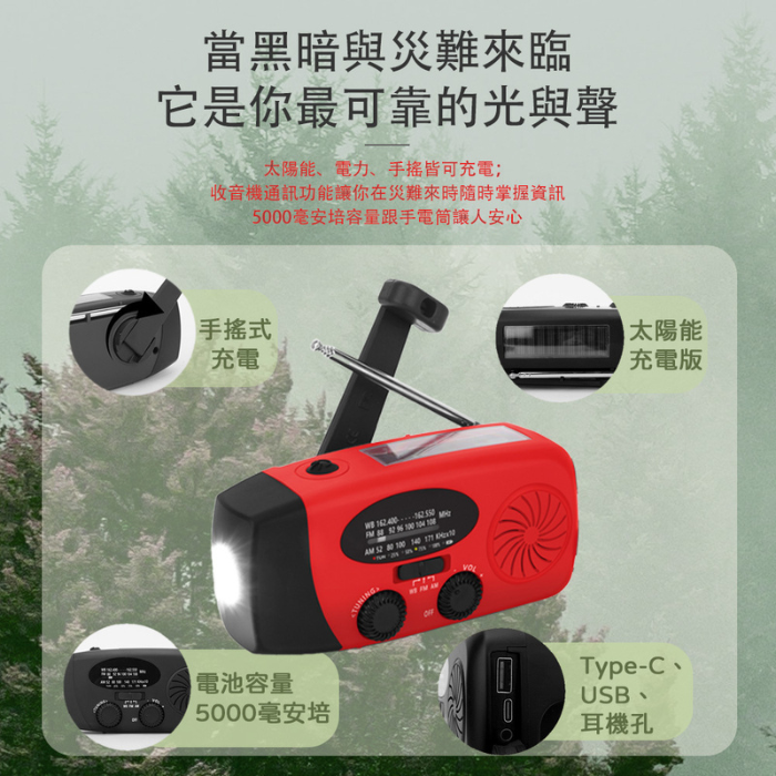 多功能手搖收音機:手電筒,收音機,緊急行動電源等功能