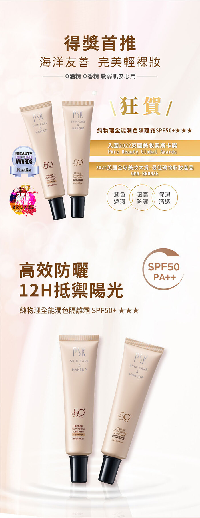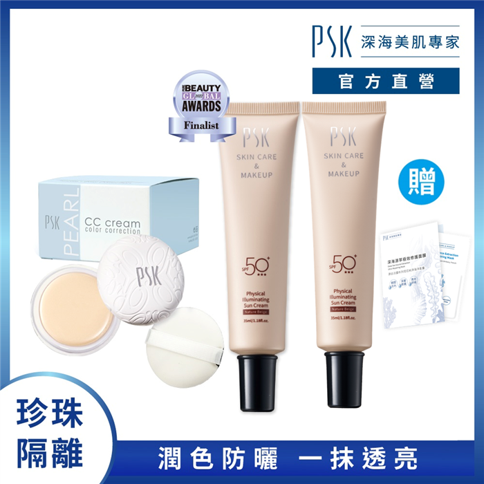 【PSK 深海美肌專家】珍珠防曬1+2組|珍珠膏10g+防曬隔離霜*2 贈深海面膜乙片 |