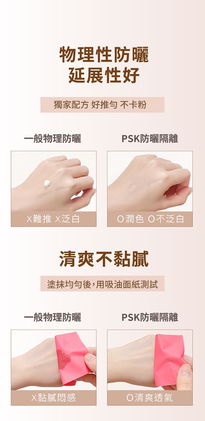 白色款防水抗汗,水潤乳液質地,全面抵抗紫外線