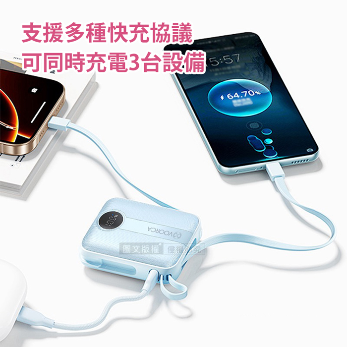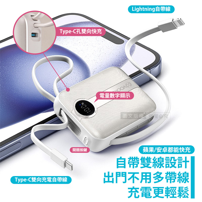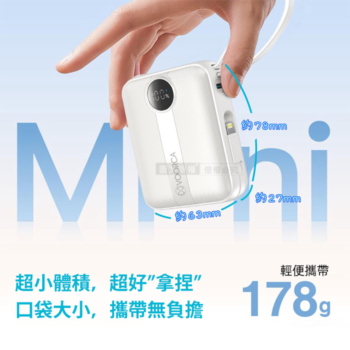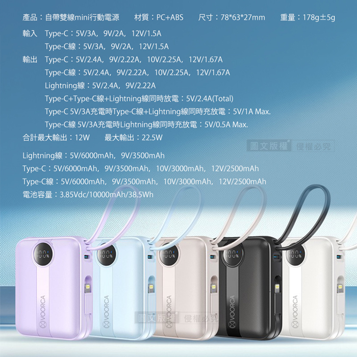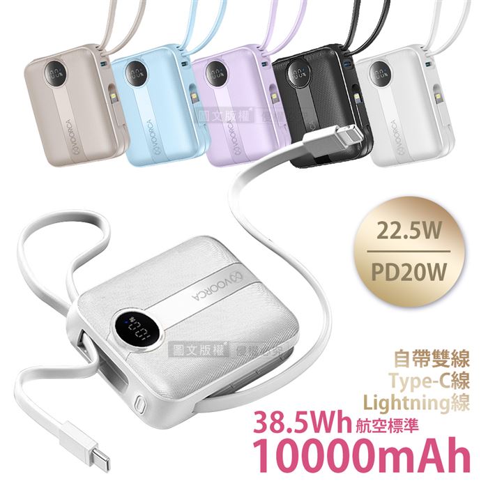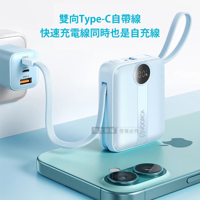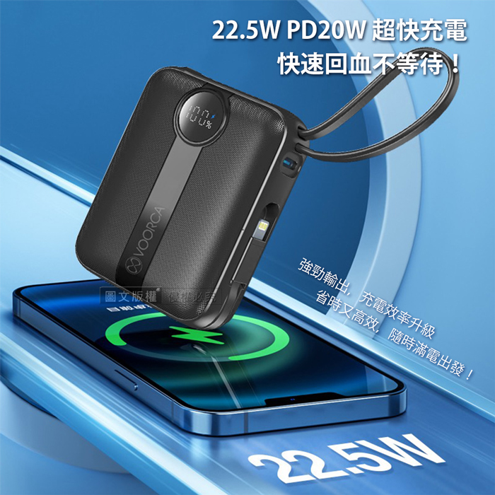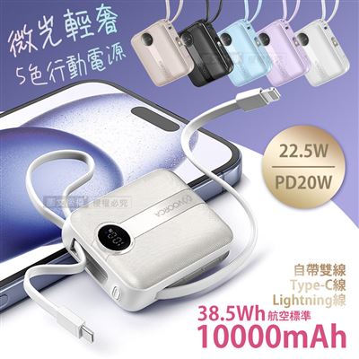 | 【商品名稱或型號】 | 【VOORCA】微光輕奢 22.5W自帶線行動電源10000mAh - 5色可選 |