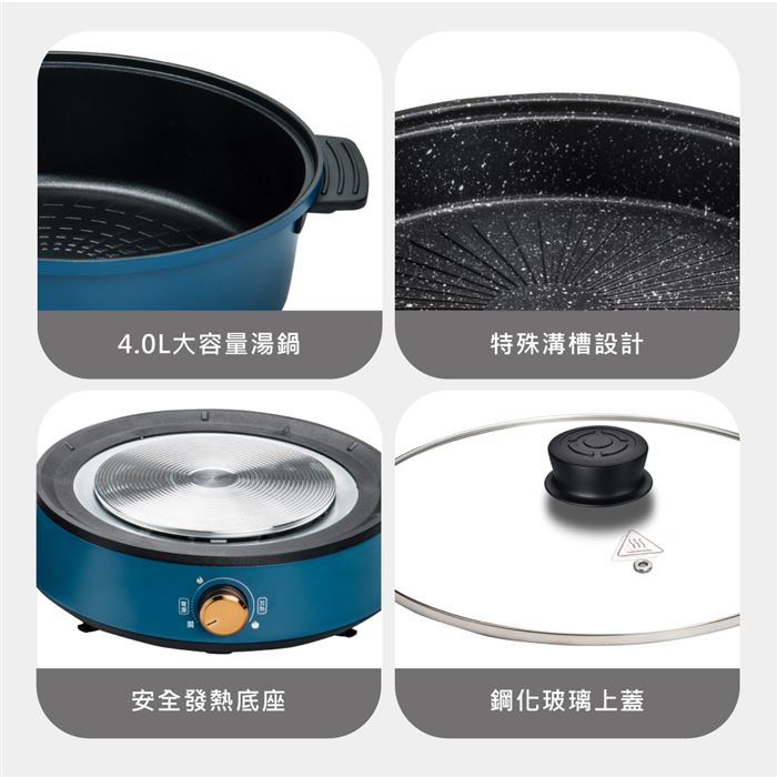 | 內容物 | 底座、 湯鍋、煎烤盤、鍋蓋 |