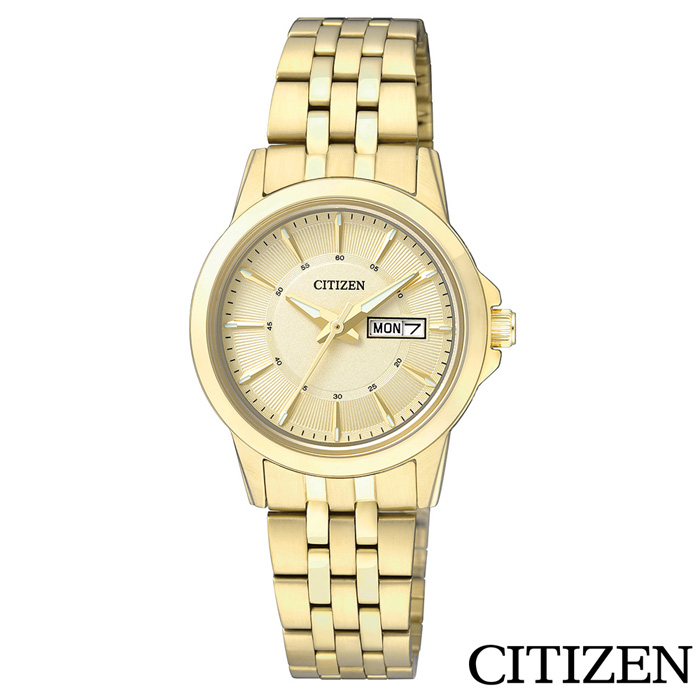 CITIZEN 星辰 秀麗金系風格石英女錶 EQ0603-59P