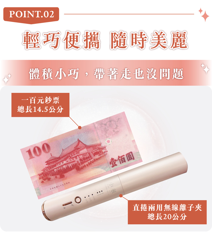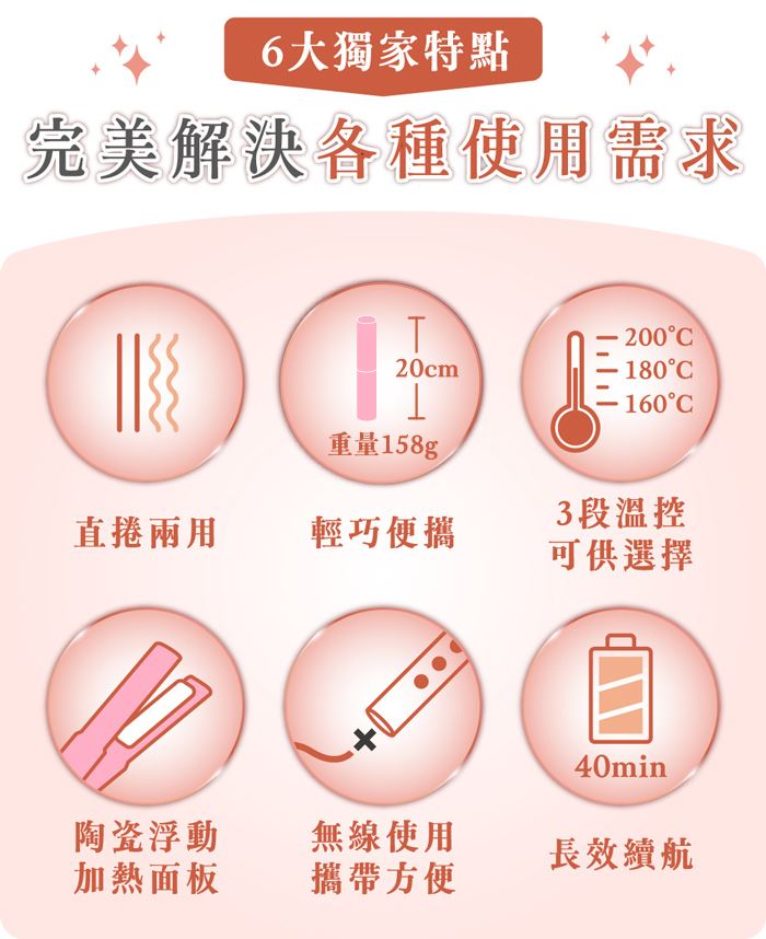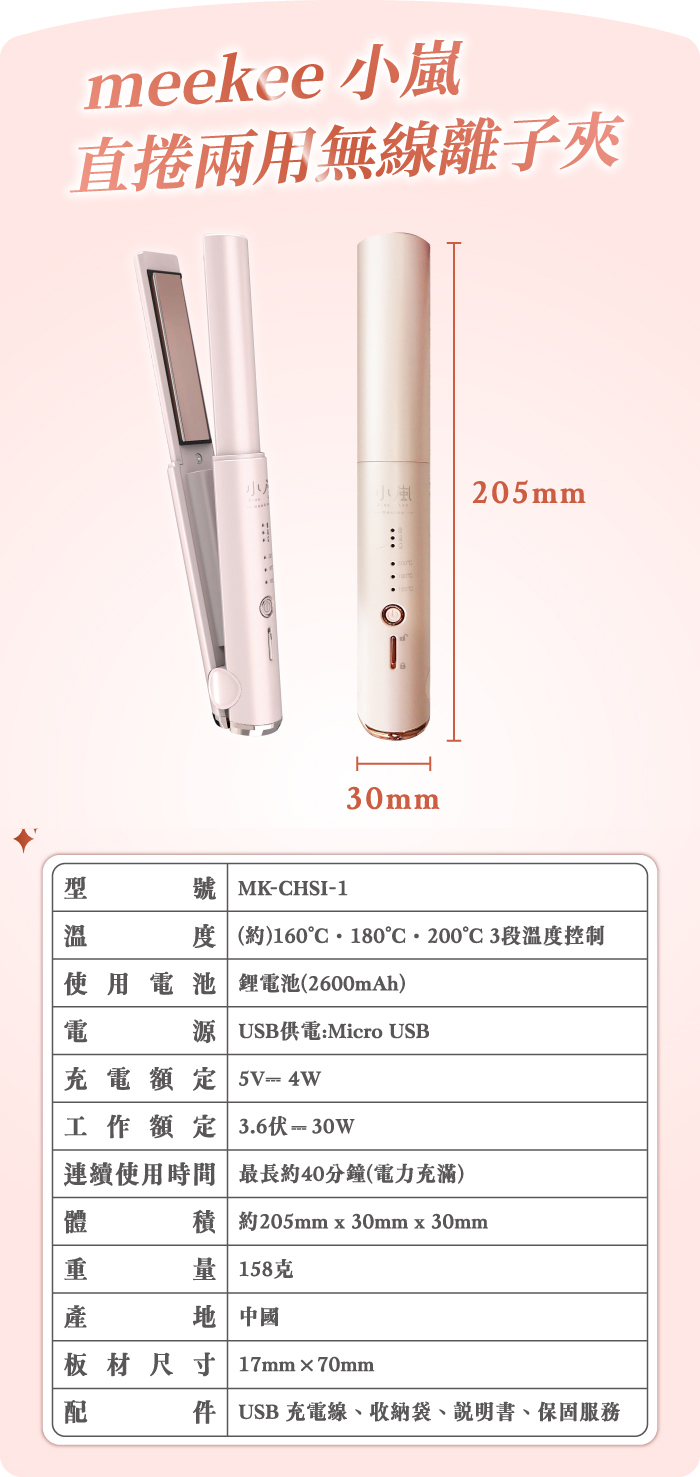 | 商品名稱 | meekee小嵐-直捲兩用無線離子夾(櫻花粉)MK-CHSI-1PK |