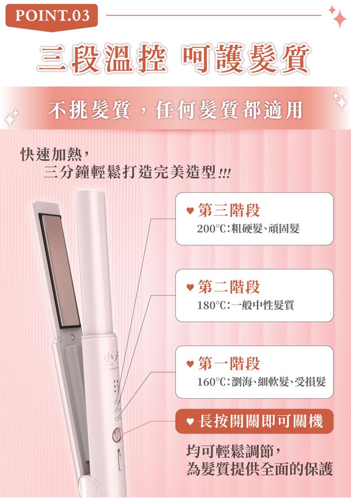 160℃、180℃、200℃三段溫控/快速加熱不用等