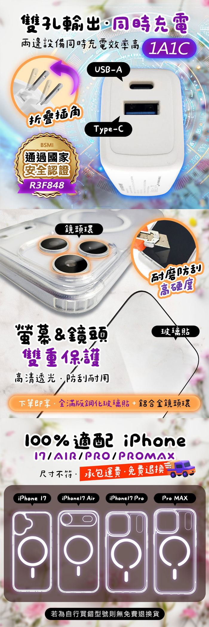 適用手機型號:iPhone 17/ 17Air / 17Pro / 17ProMax