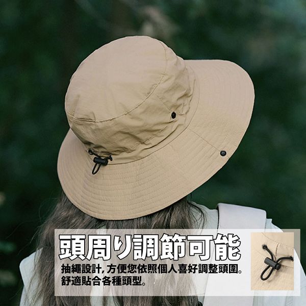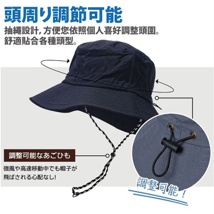 內附可拆式防風繩,風大時也穩穩戴著不移位。帽圍可調節,男女皆適用,實用又百搭!