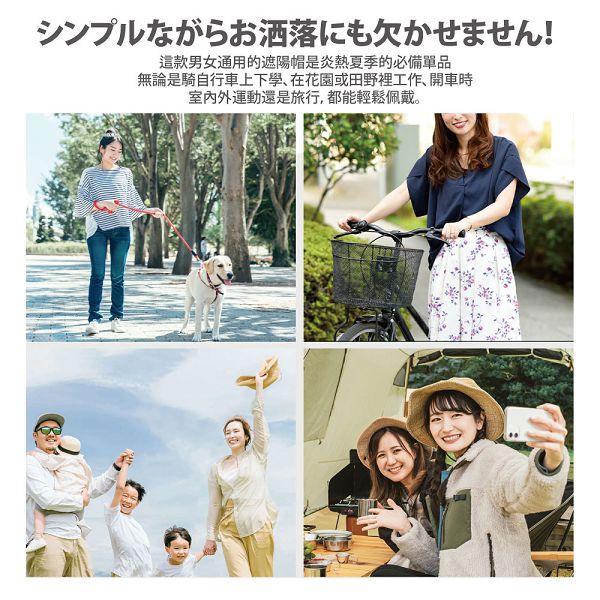 360度寬版帽簷,有效阻擋紫外線及強光照射,守護臉部、頭髮與肌膚,戶外活動超安心。