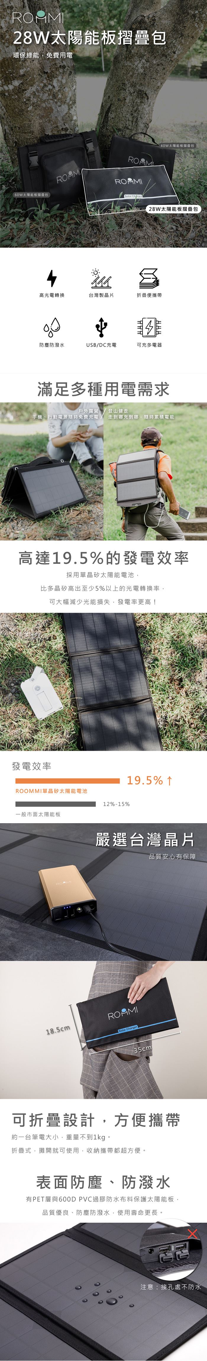 | 【商品名稱或型號】 | 【Roommi】28W太陽能充電板 (小電寶用) |