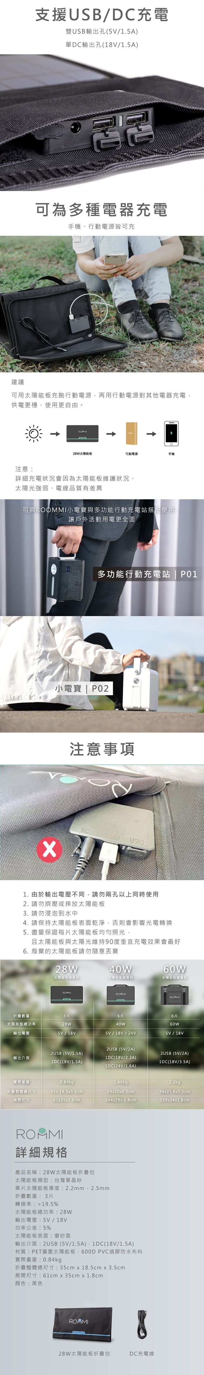 | 【內容物】 | 28W太陽能板折疊包*1、DC充電線*1 |