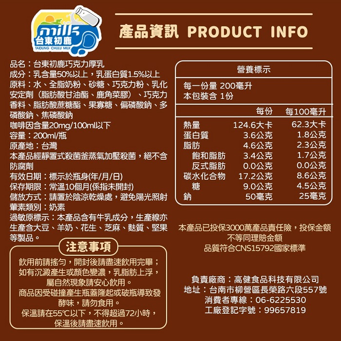 | 商品名稱 | 【台東初鹿】巧克力厚乳24入/箱 |