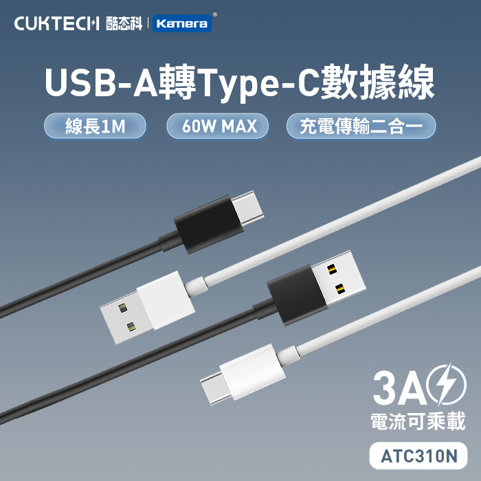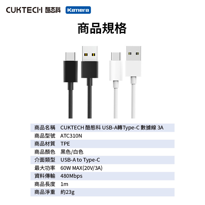 | 商品名稱 | CUKTECH 酷態科 ATC310N USB-A轉Type-C 數據線 3A |