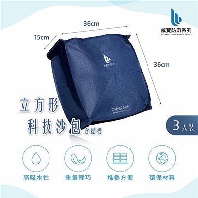 立方形科技沙包(含提把)結合了立體設計,適合垂直堆放,提升防洪高度。
