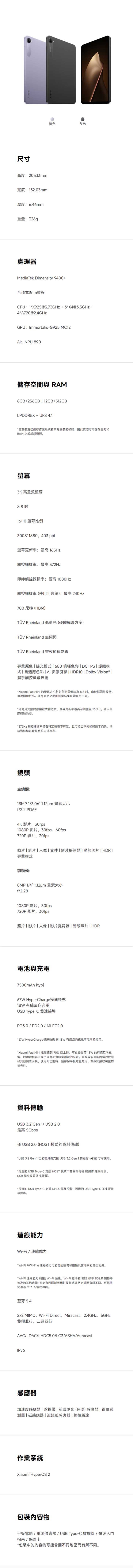 | 商品名稱 | Xiaomi Pad Mini (12GB RAM/512GB ROM) |