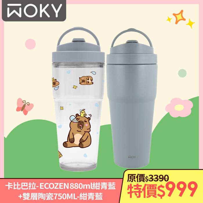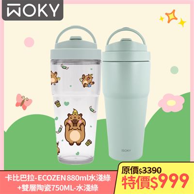 | 商品名稱 | 【WOKY】卡比巴拉-愛錢錢-ECOZEN 880ml-水淺綠+雙層陶瓷750ml-水淺綠 |