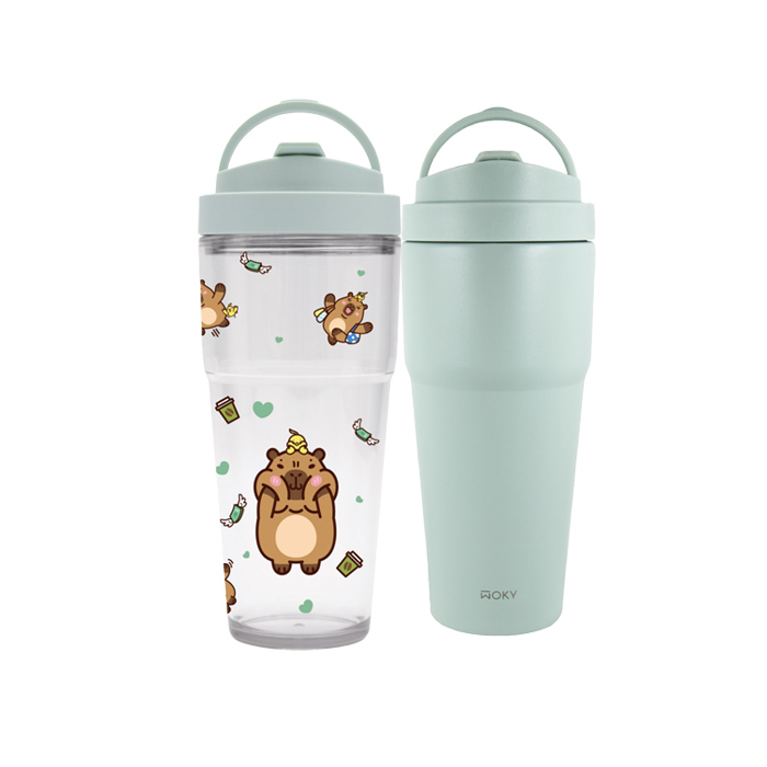 | 內容物 | 【WOKY】卡比巴拉-愛錢錢-ECOZEN 880ml-水淺綠+雙層陶瓷750ml-水淺綠 |