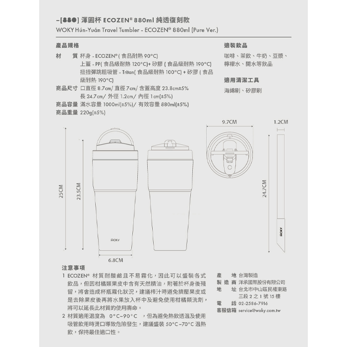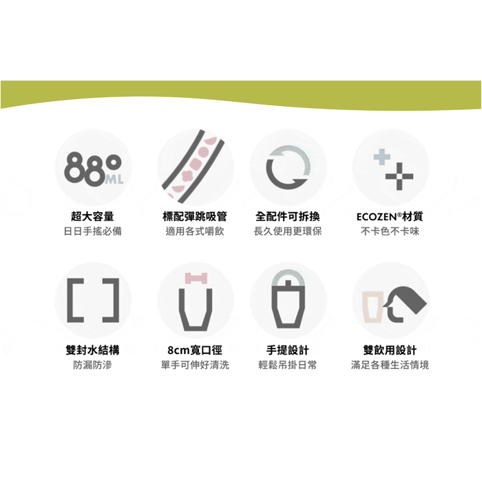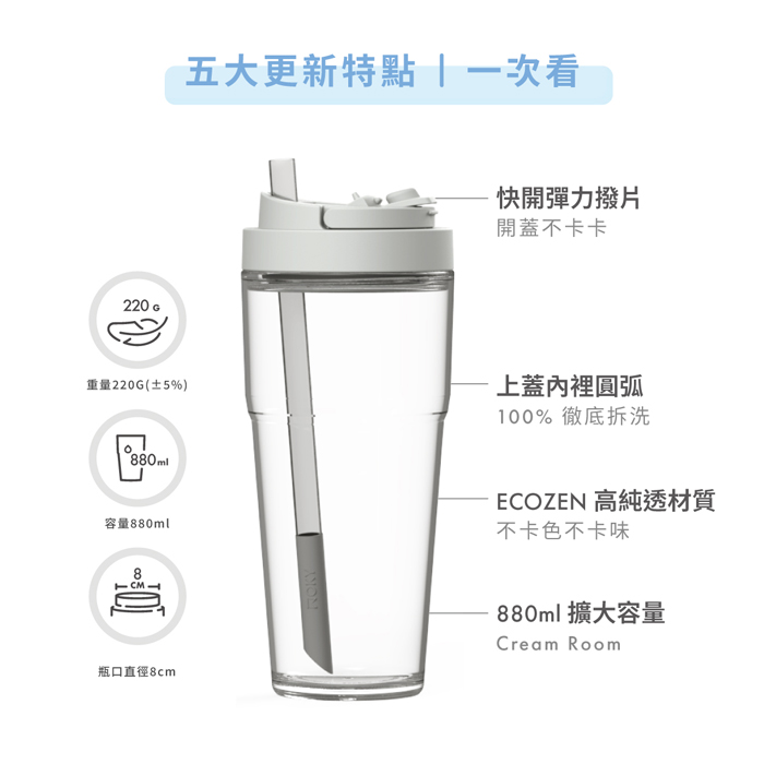 渾圓杯-ECOZEN 880ml :內附扭扭彈跳粗吸管(tritan)x1