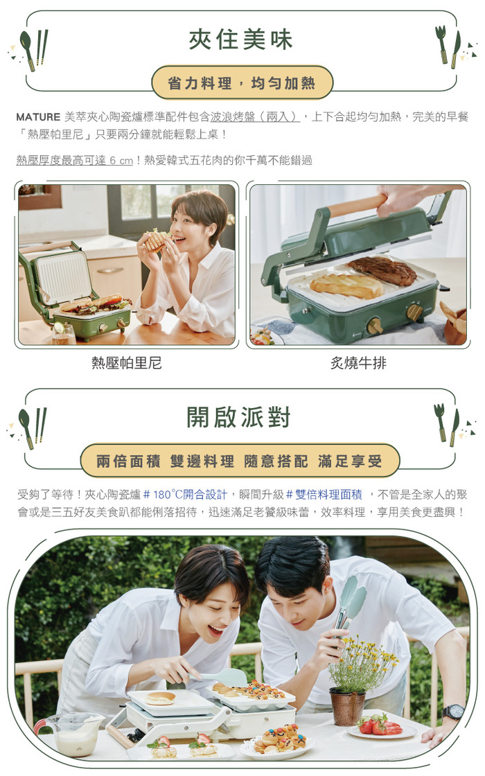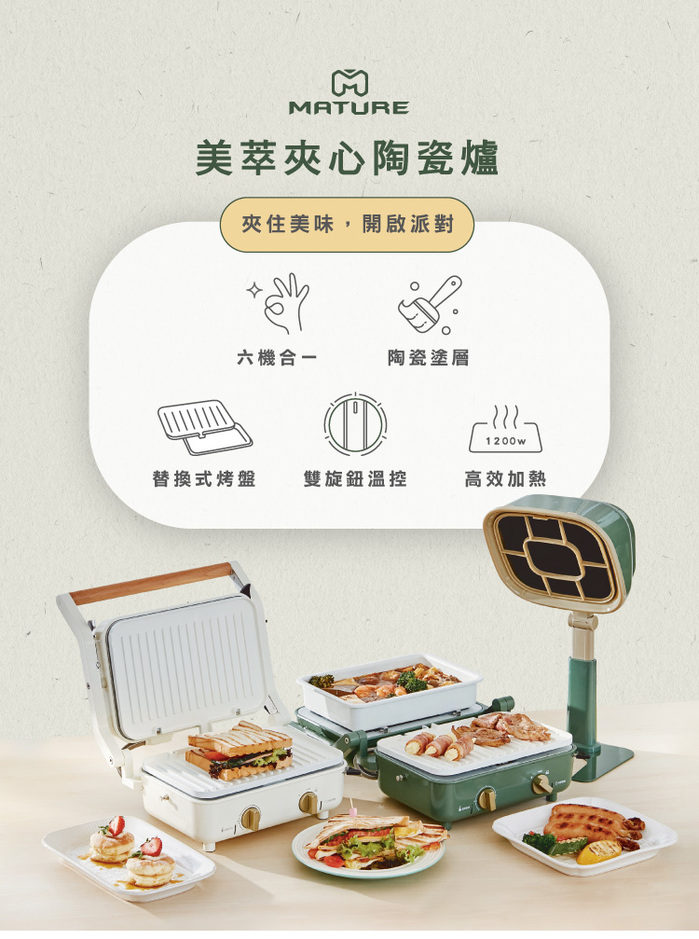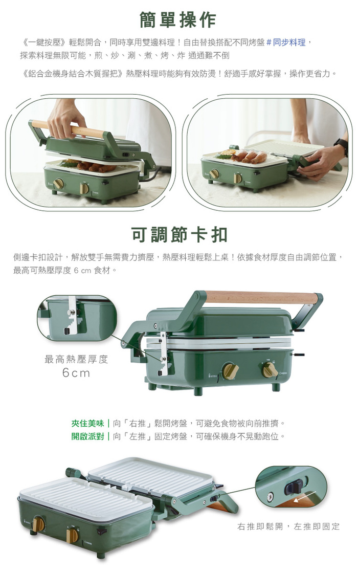 ✦ 多種料理一機搞定,熱壓、火烤兩吃