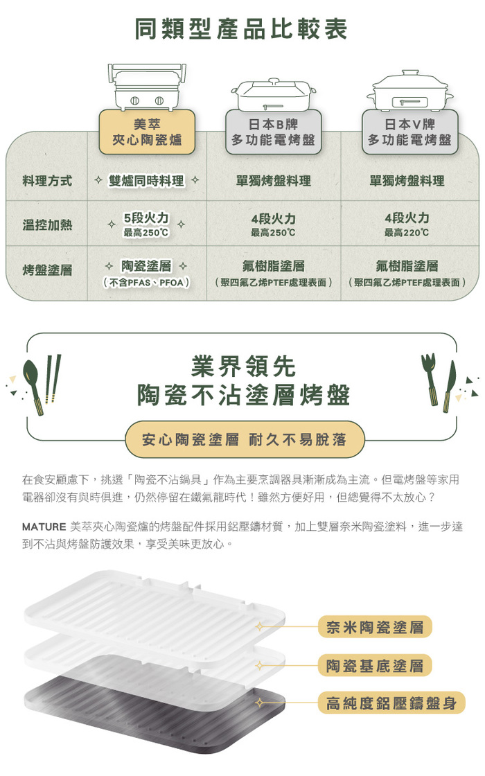 陶瓷塗層,不含氟化物不沾塗層,減少食安疑慮