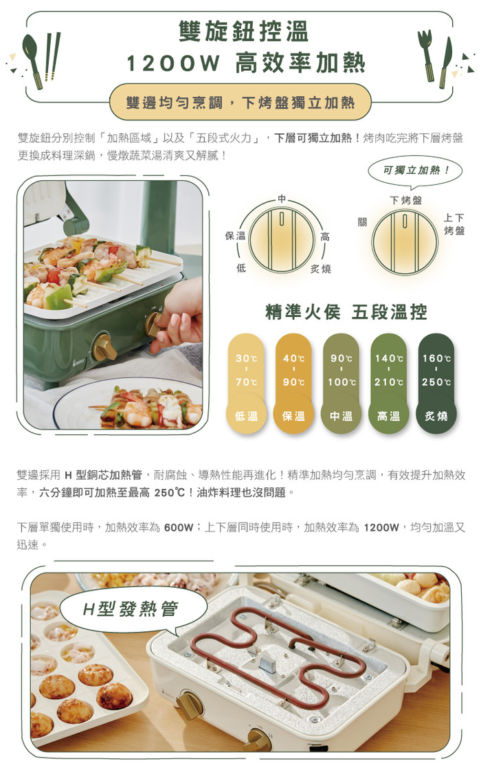 1200 W加熱火力,五段式火力溫控