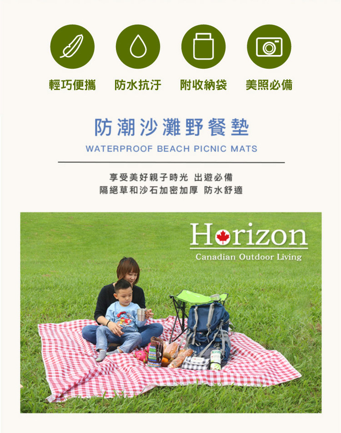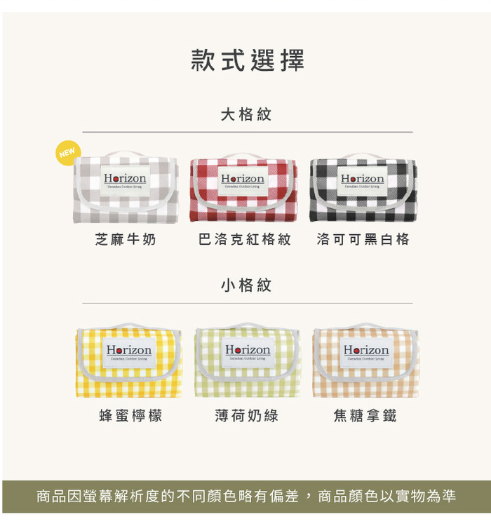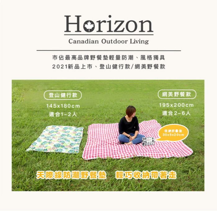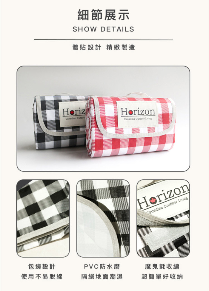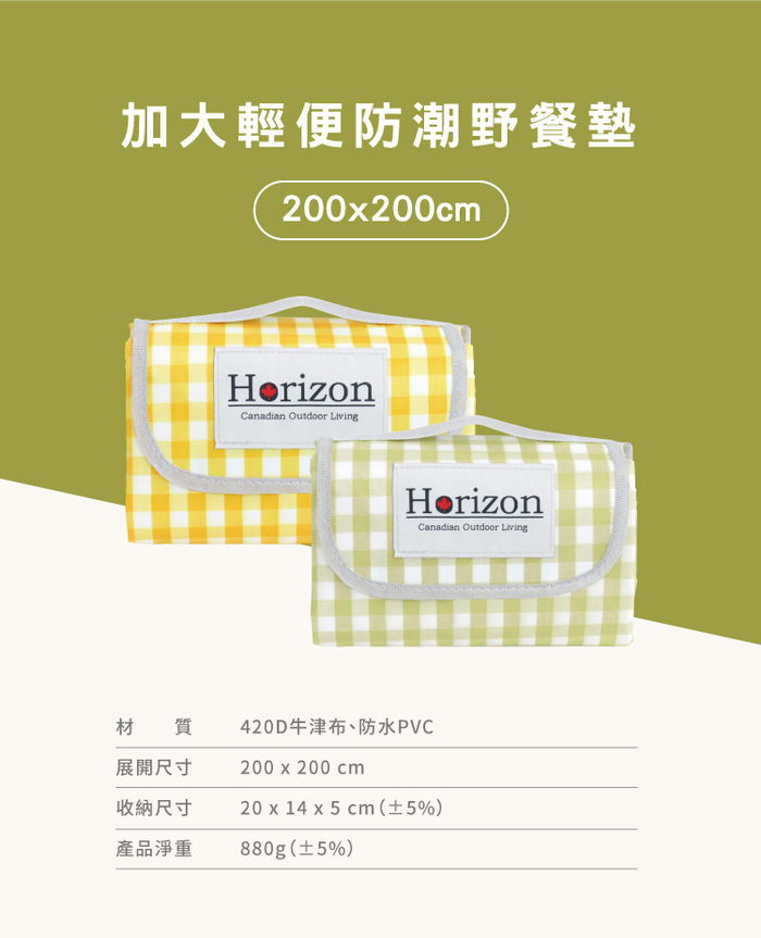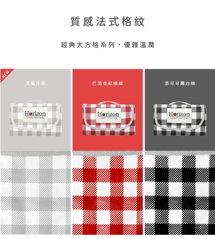 | 【商品名稱或型號】 | 【Horizon 天際線】法式格紋加大輕便防潮野餐墊(200x200cm) - 5款可選 |