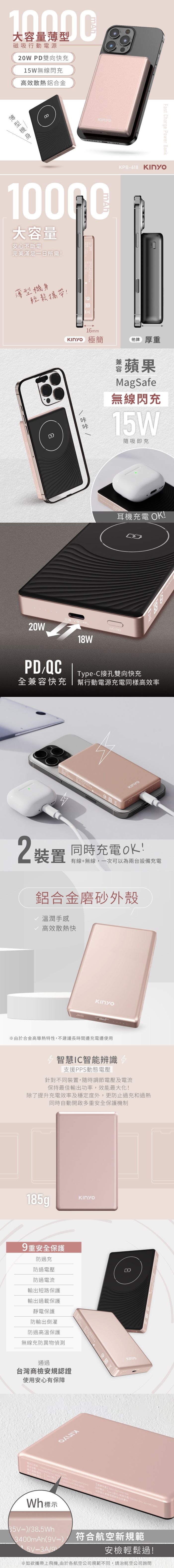 | 【商品名稱或型號】 | 【KINYO】大容量薄型磁吸行動電源(KPB-618)10000mAh |