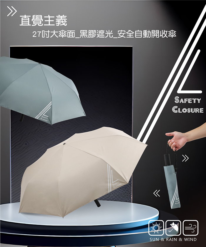 【品名】Feeling cool直覺主義 27吋大傘面 黑膠遮光 安全自動開收傘