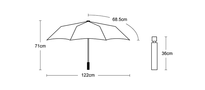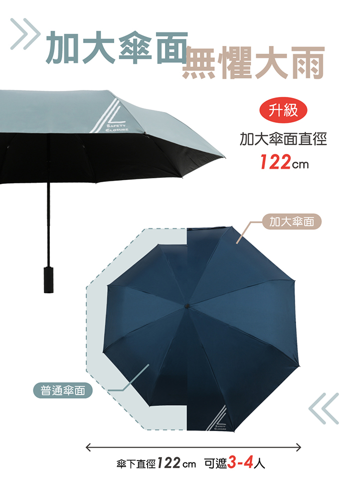 傘下直徑加大至122cm,背著背包也不怕淋濕