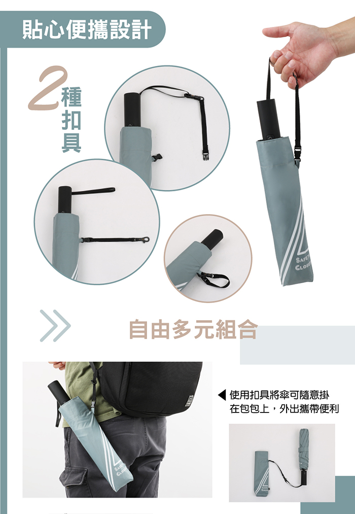 貼心扣帶設計,可掛袋子、後背包