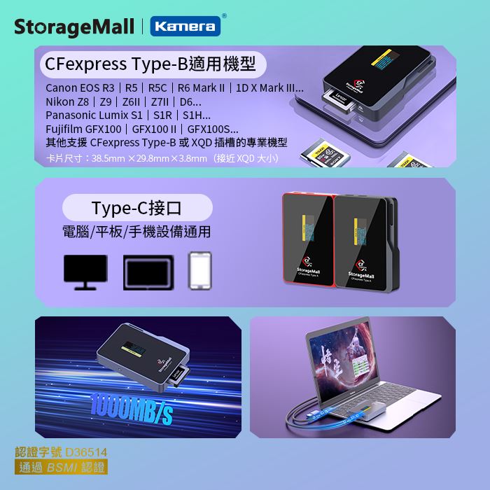 | 【商品名稱或型號】 | 【StorageMall】CFexpress Type B 鋁合金高速讀卡機 |