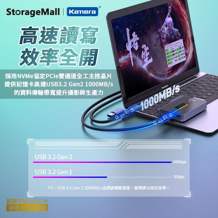 支援USB 3.2 Gen2(10Gbps)最高傳輸速度