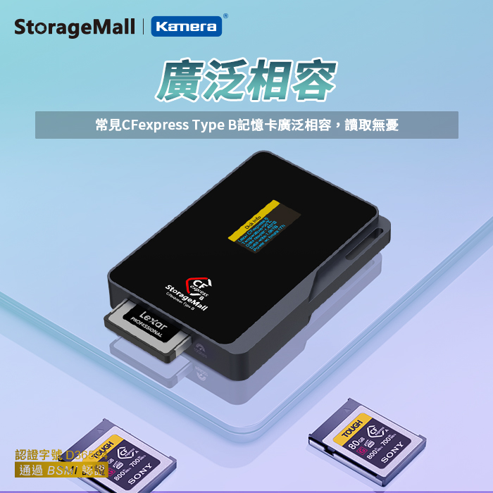 - CFe-B卡專用:專為 CFexpress Type B 記憶卡設計,提供穩定且高效的讀寫支援。能精準匹配 Type B 卡槽結構,確保插拔順暢、資料傳輸穩定。適用於如 Nikon、Canon 等支援 CFe-B 記憶卡的相機。